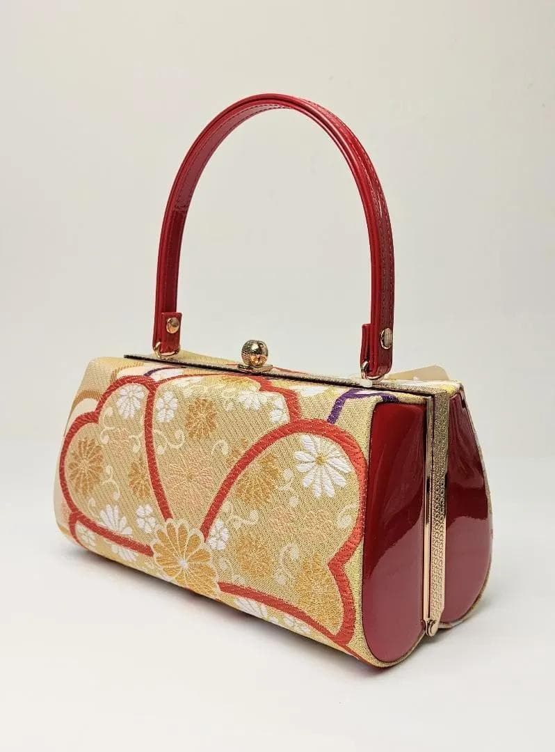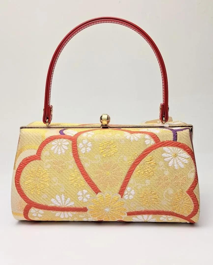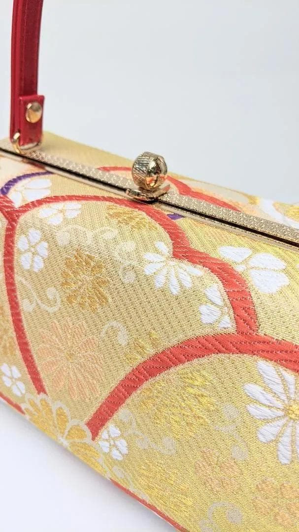 超格安価格 金 赤 帯地 振袖用 セット バッグ 草履 3枚芯 U52-1