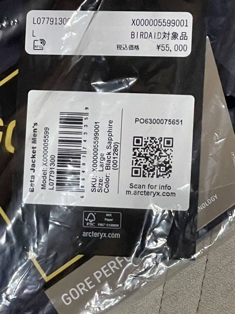 未使用品】 アークテリクス ベータジャケット ブラックサファイア XL