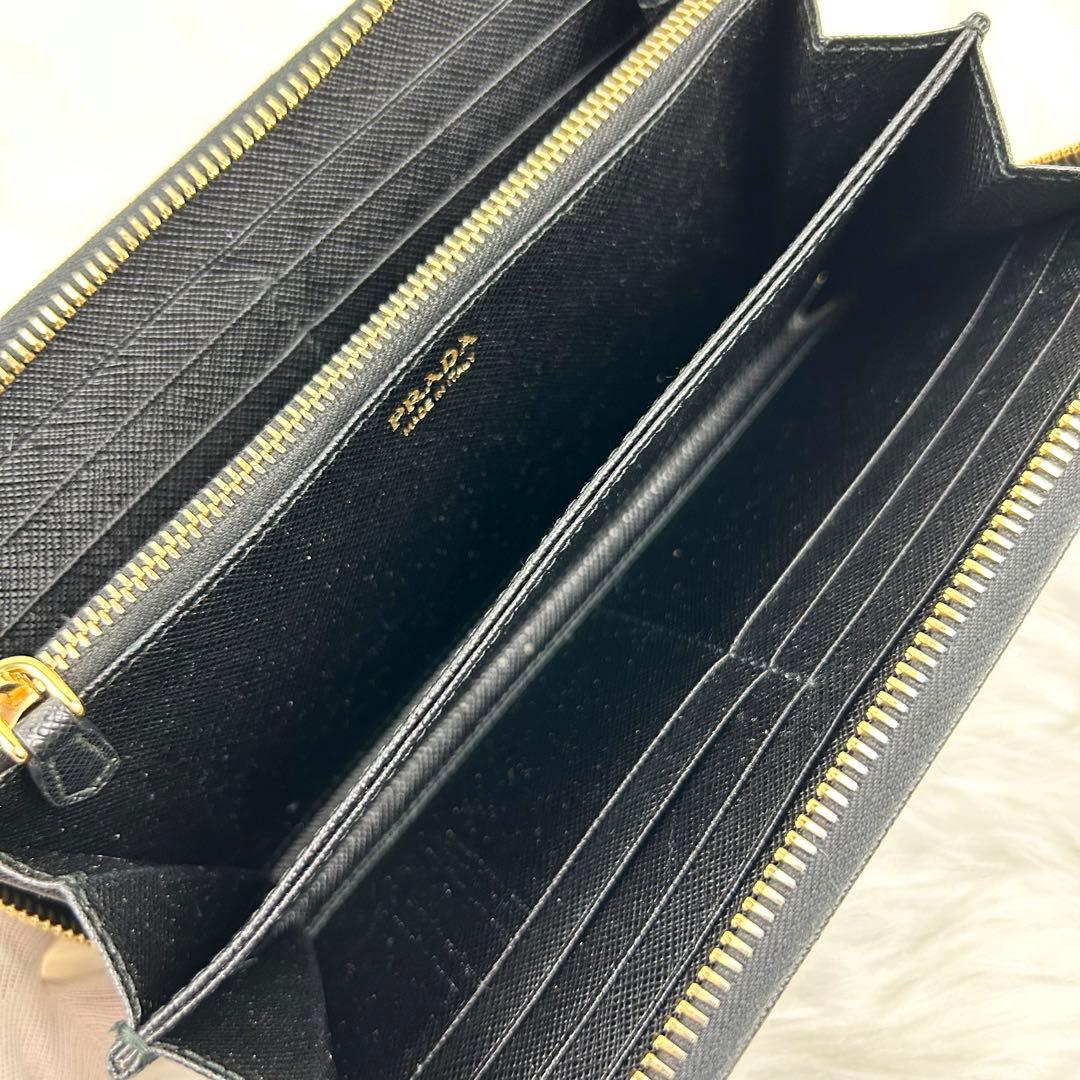 極美品 プラダ 長財布 サフィアーノレザー 三角ロゴ ラウンドジップ
