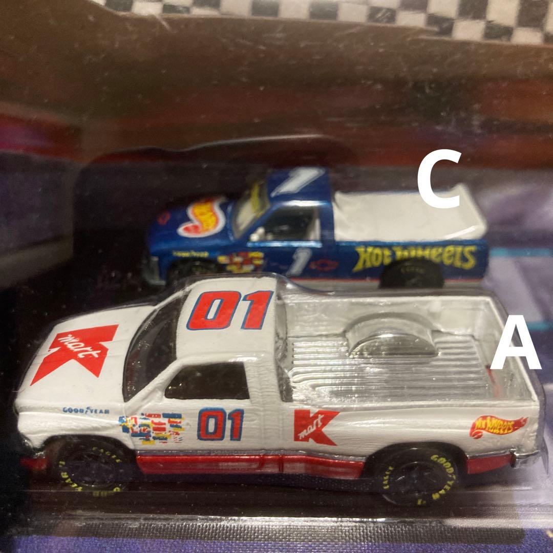 マテル社製、1996年発売の①TARGETストア限定版 Designer Collection 8台セットと②K-mart限定版 THUNDER TRUCKS 4台セットの出品になります。①はマテル社の専属カー・デザイナーによるオリジナル・ホットウィール全8種のセットです。何れも色鮮やかなペイントが施されておりゴールドにコーティングされた5スポーク、5ホール、ディレクショナル&レースの4種の異なるウィールを履いていて近未来的なデザインも多くホットウィールの真骨頂的な商品になっています。②はNASCARが統括する各ストックカーレースのカテゴリーのひとつであるトラックレースの一場面を4台のトラック(写真8&10に映るAとDはDODGE RAM 1500、BとCはCHEVY 1500)で再現したセットになっており前方左側の白いダッジ・ラム(A)はK-martがスポンサーとなり参戦した車輌です。発売当時に購入して暗所保管して来た品物です。良いコンディションを維持しています。ご興味がお有りのコレクターの方、宜しくお願い致します。