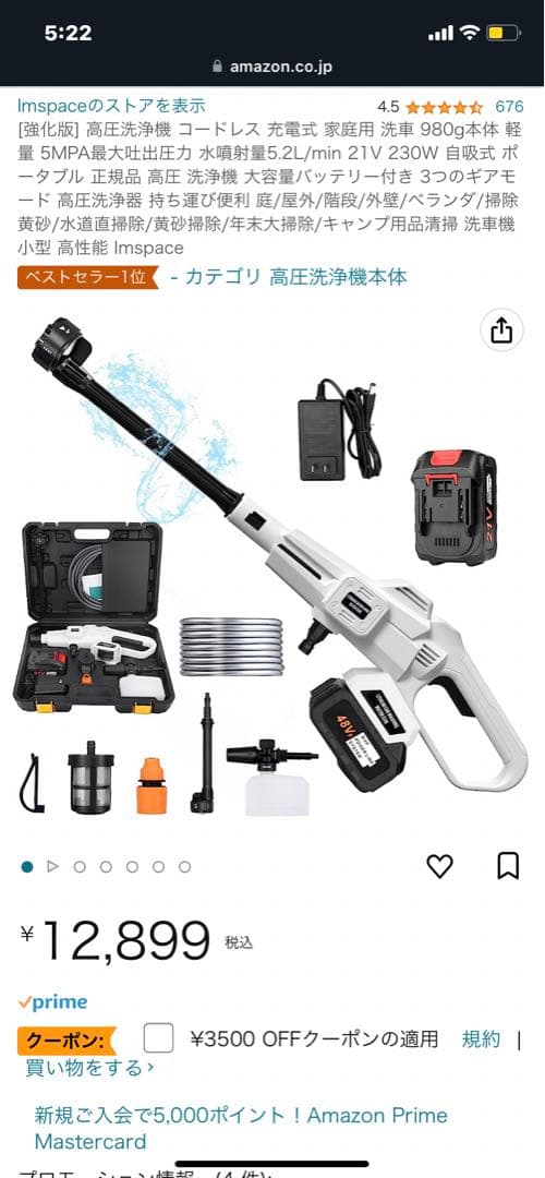 Amazon | Imspace 高圧洗浄機 コードレス 充電式 家庭用 洗車 980g本体