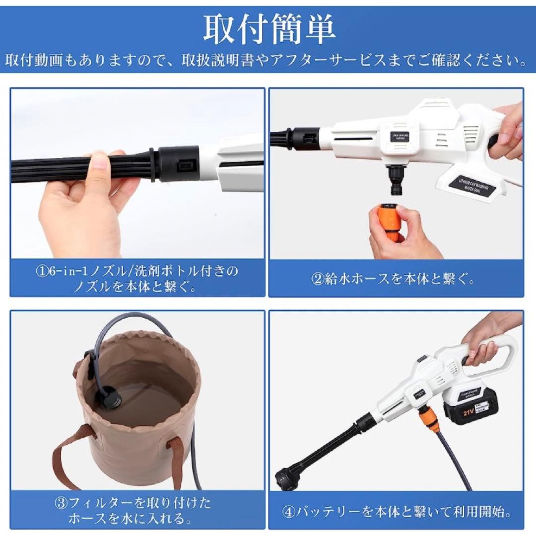 税込 高圧洗浄機 コードレス 充電式 6-in-1多機能マルチノズル 収納