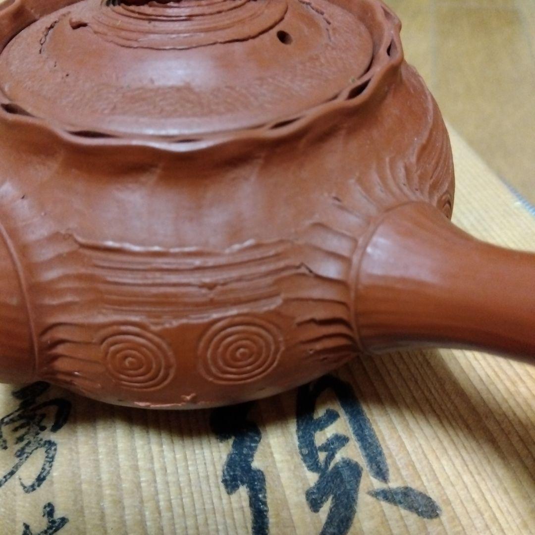 茶道具】 常滑焼 森田勇 (伯勇) 作 朱泥手造り 狸摘み 横手急須 茶注