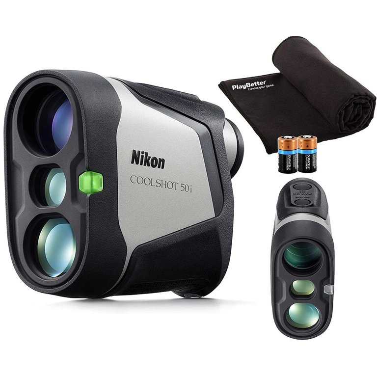 Nikon COOLSHOT 50i Golf Laser Rangefinder Bundle | 2021 Release | Includes Carrying Case, PlayBetter Microfiber Towel, Two (2) CR2 Batteries