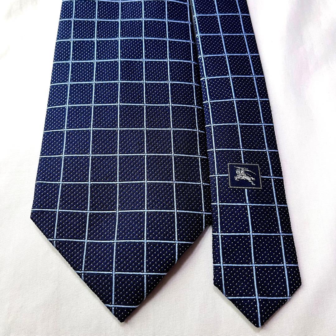 バーバリー ネクタイ ネイビー 格子柄 高級 チェック ホースロゴ