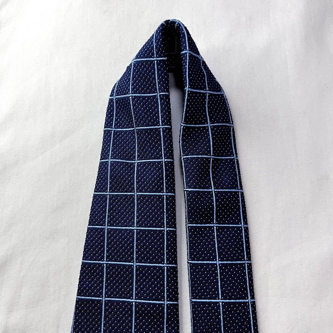 美品 バーバリー ネクタイ シルク チェック柄 藍色 紺 上品