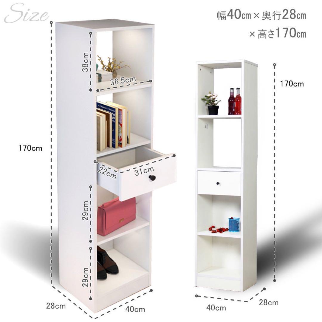 本棚 収納棚 マルチ収納ラック ラック ホワイト 北欧 シンプル 幅40cm 引き出し付き 省スペース 隙間収納 シェルフ ディスプレイ インテリア 白 奥行28cm 高さ170cm オープンラック 多用途 雑誌 文庫本 小物商品の情報