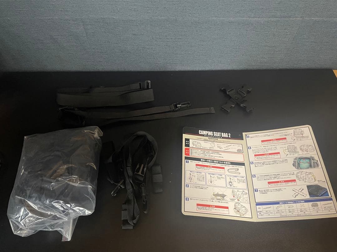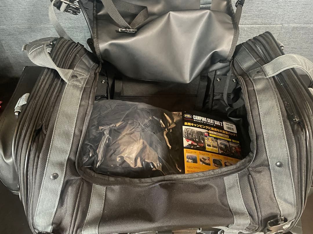 バイク用に買ったシートバックです。1度だけ使用しました。沢山入るのでバイクでキャンプなどにも便利です。