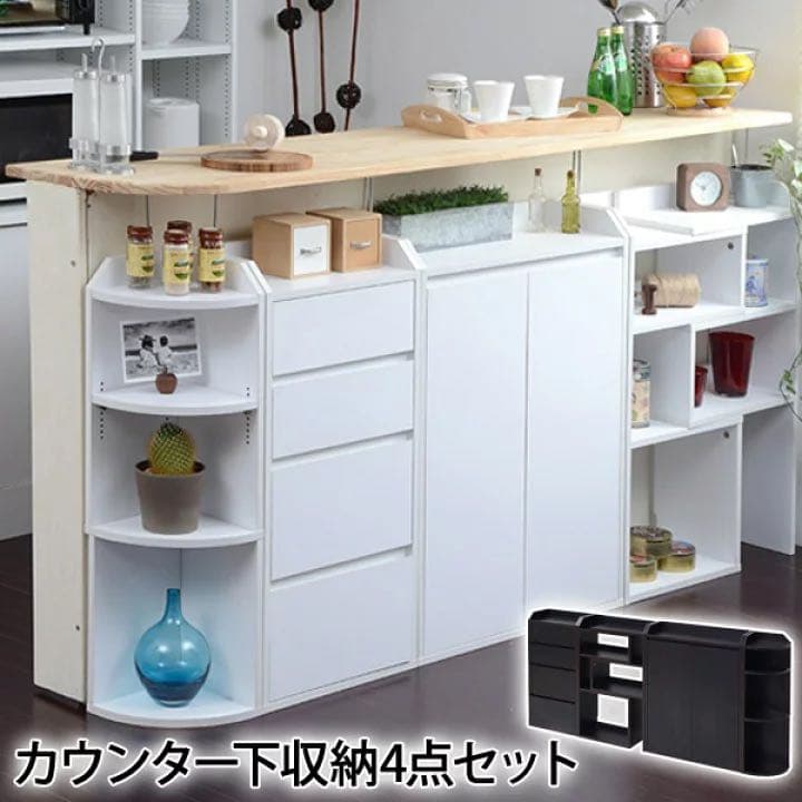 【楽天市場】角に丸みの安全設計 カウンター下収納棚 4点セット