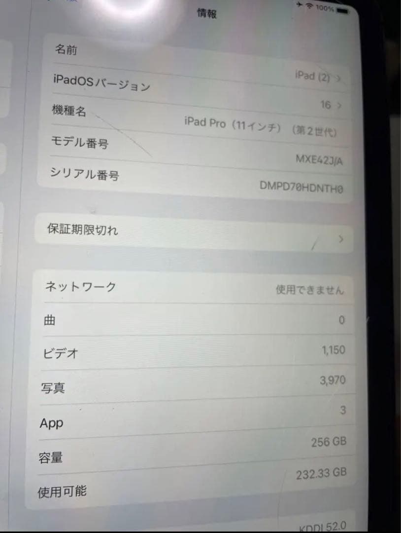 ipad pro 11インチ 第2世代 256GB Cellularモデル スペースグレイ
