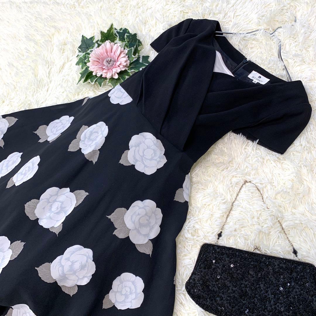 *NO215.【エムズグレイシー(M)】膝丈 ワンピース カメリア カシュクール