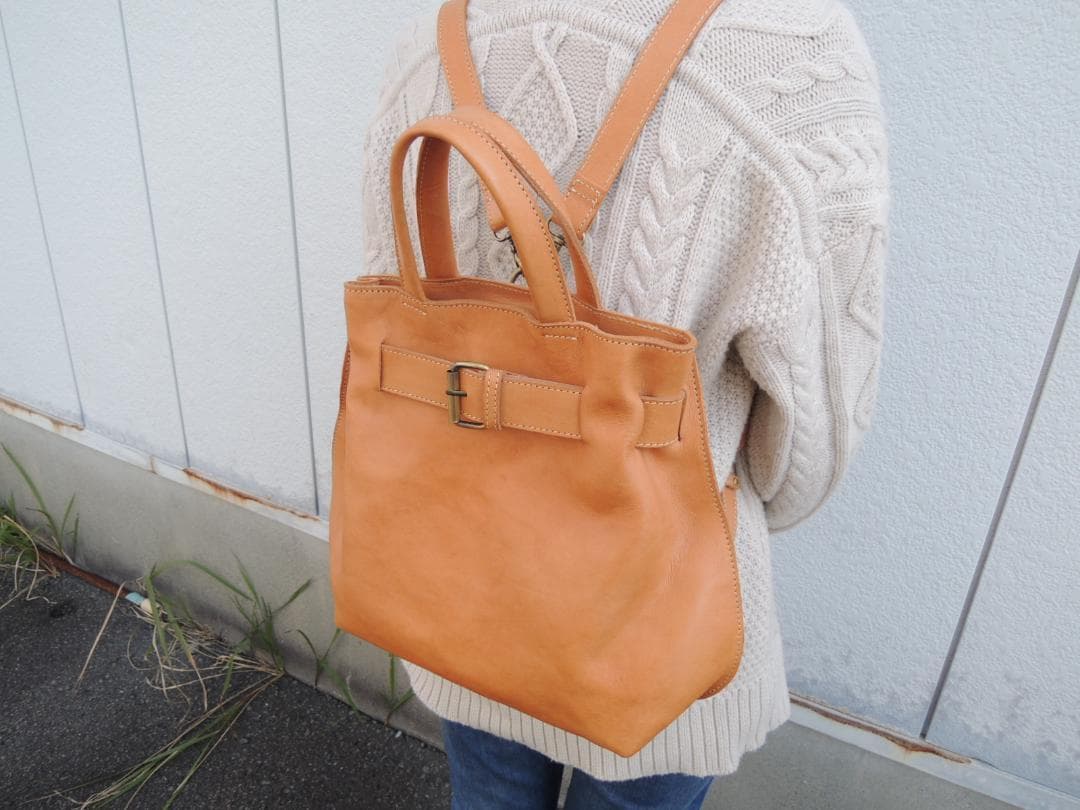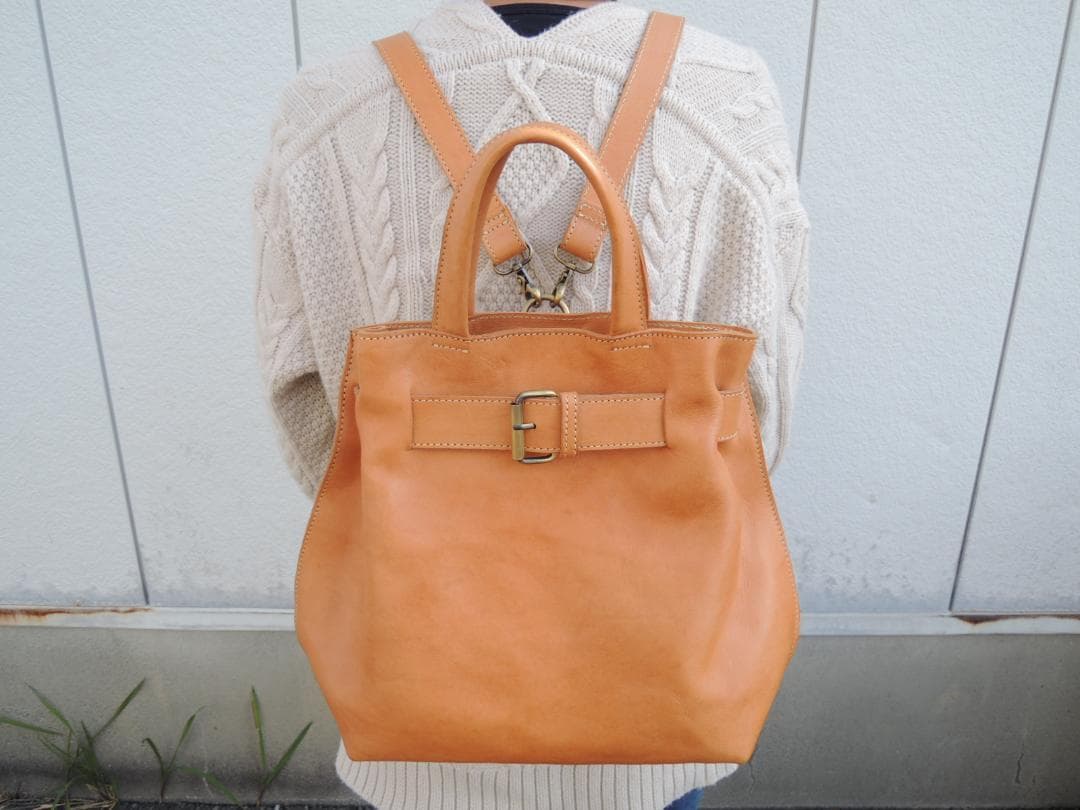 端革シリーズ》ヌメ革 2wayバッグ リュック &ショルダー キャメル