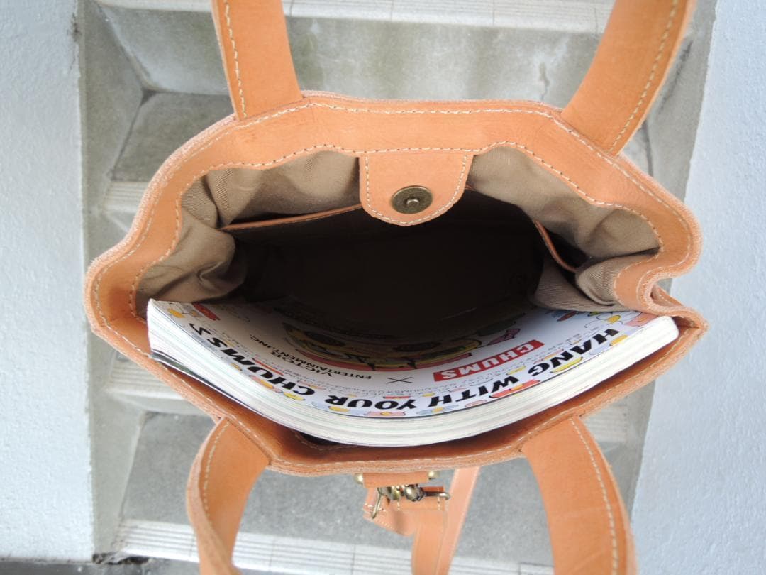 サイズは、約横27cm(底)×縦31cm(持ち手まで42cm)×奥行14cm