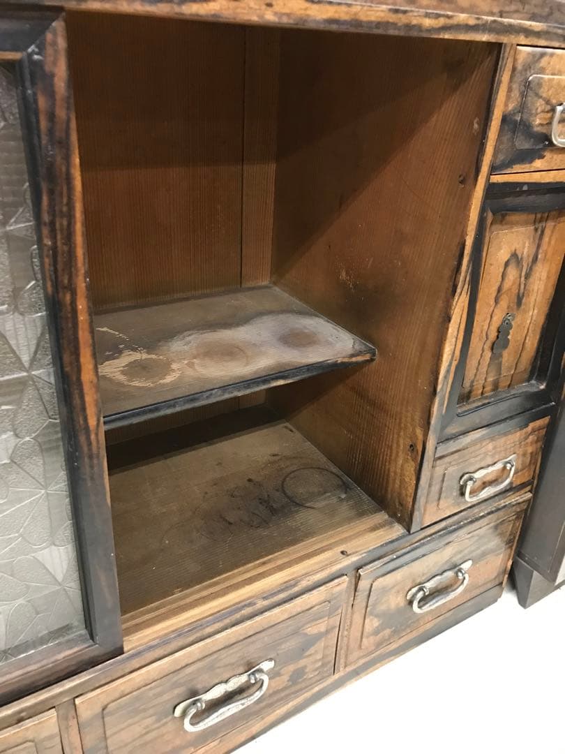 日本製 黒柿 水屋箪笥 古民家 古家具 収納棚 引き出し 茶箪笥 無垢