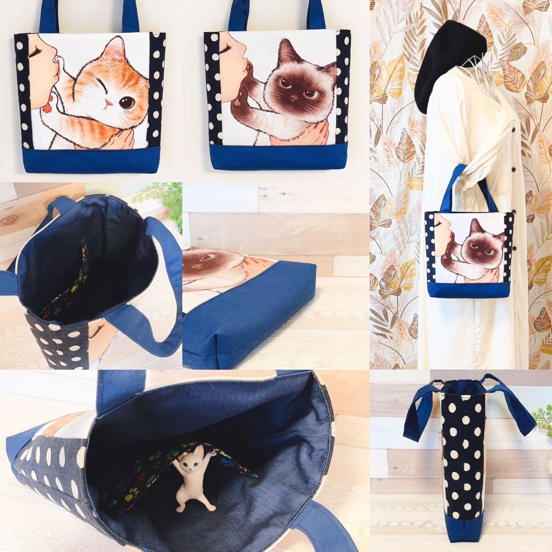 ●トートバッグ(ソフトタイプ、表トラ、裏シャム、持ち手肩掛け仕様、縦約37cm.横下部分約34cm.マチ約6〜7cm、側面生地は色も柄も違う生地で)2個 (×2)